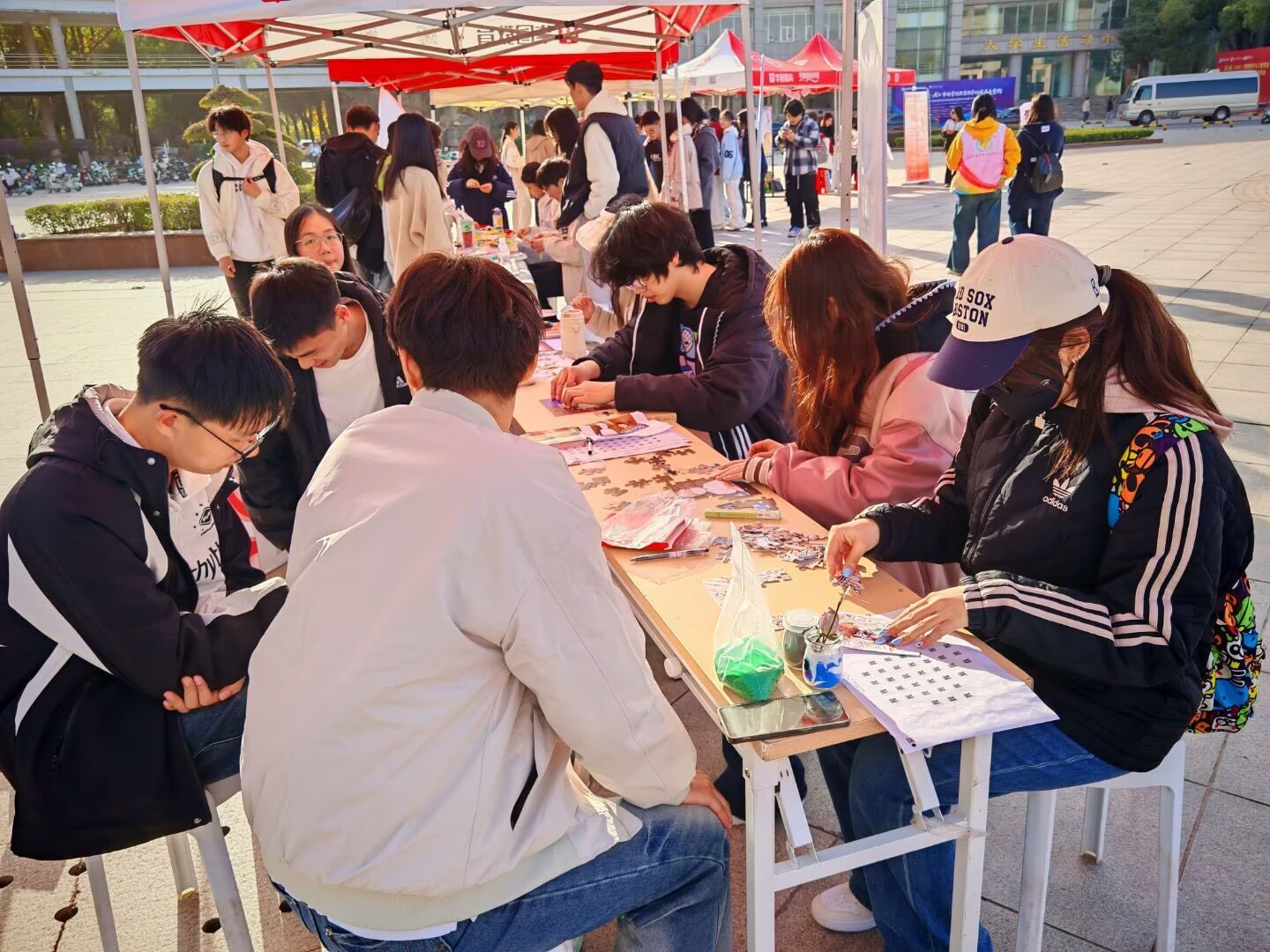 活动围绕“趣味集字”与“礼品兑换”两大环节展开,兼具趣味性与启发性。在“趣味集字”阶段,同学们通过制作四季心情瓶、合作拼拼图等互动游戏,不仅体验到游戏的乐趣,也在过程中锻炼了专注力、执行力和团队协作能力。成功集齐字帖并完成挑战的同学,凭活动卡兑换礼品。一份份小巧而暖心的礼物,承载着学院对同学们的真挚关怀,也为此次活动增添了温馨的色彩。(撰稿:程小蝶 张涵 审核:陈珊珊)