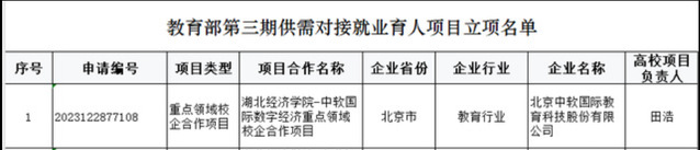 日前,教育部公布了第三期供需对接就业育人项目立项名单,我院“湖北经济学院-中软国际数字经济重点领域校企合作项目”获批立项。
